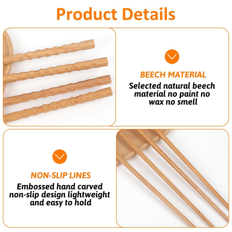 The non-slip texture of the chopsticks allows you to grip the food more easily without the risk of falling off, making them ideal for beginners in the kitchen as well. The natural wood used in the production is not only durable, but also environmentally friendly, making it a healthy and durable kitchen tool.