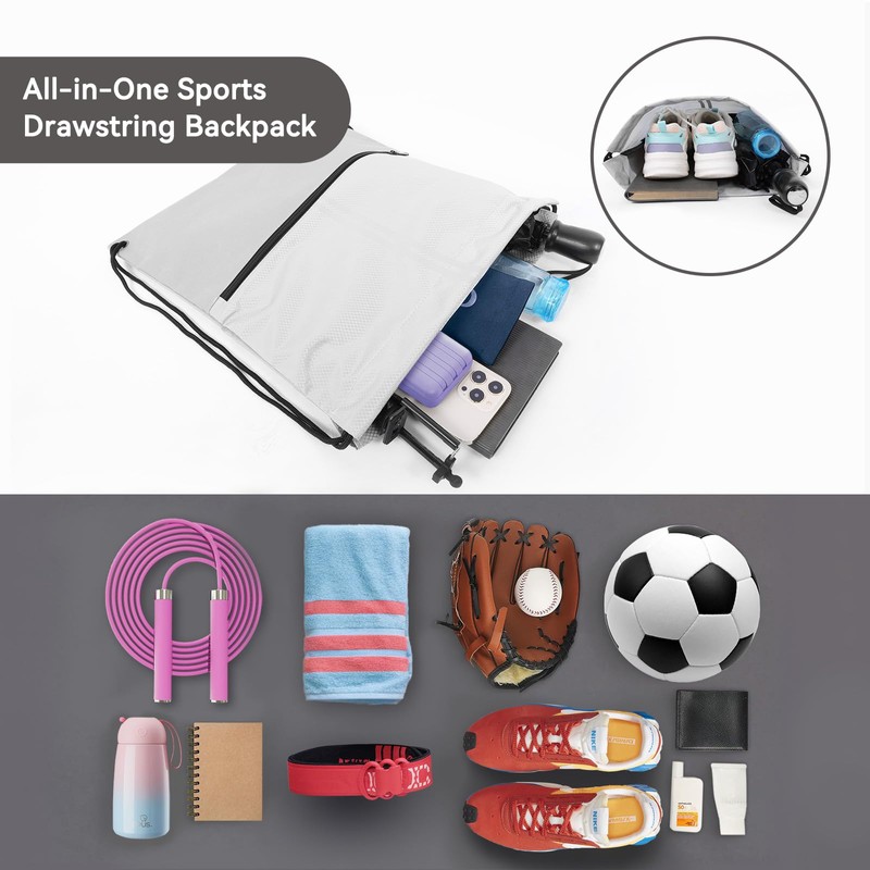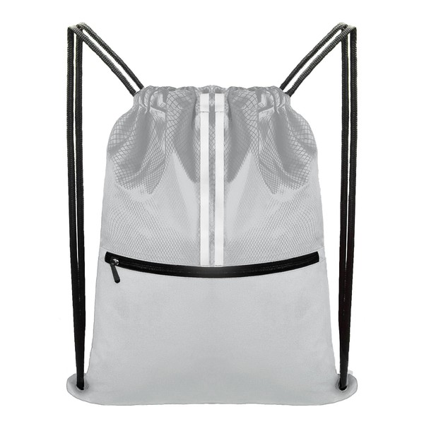 JOYNYON Large Drawstring Backpack Bag Sports Draw String Gym Bag for Women (Silver Gray)
