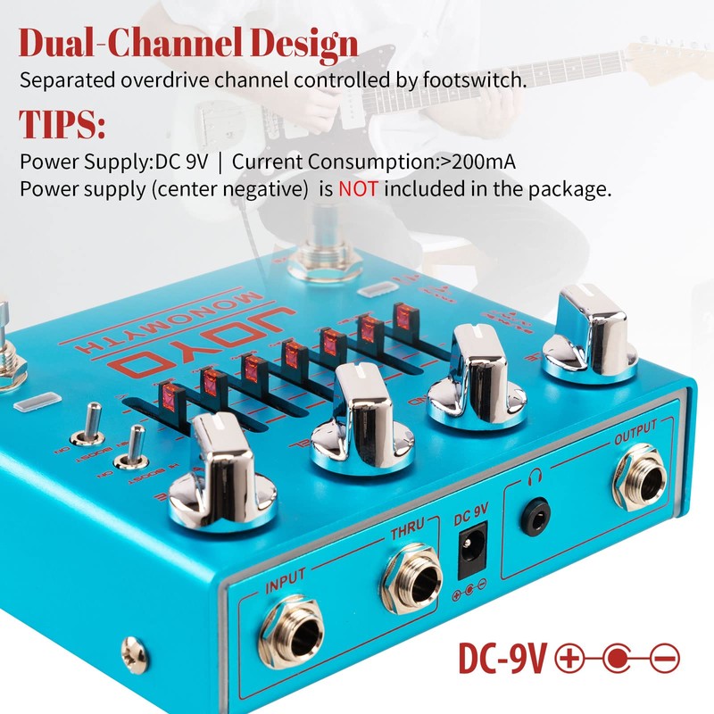 - Dual channel: TREBLE and GAIN BOOST with an independent overdrive footswitch as well as multi-functional control buttons VOICE/BLEND/LEVEL/DRIVE.