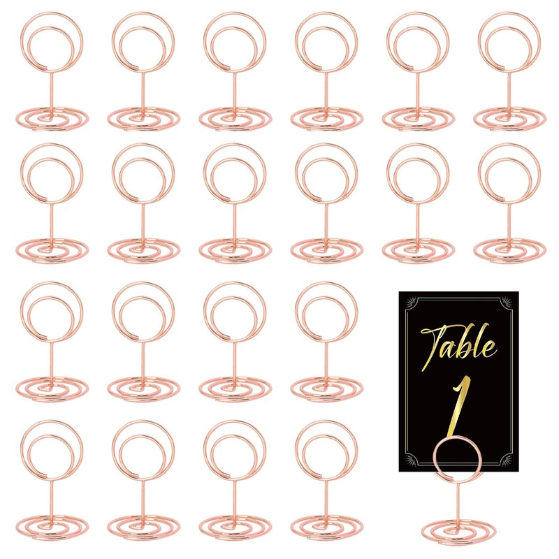 JOYOLA Pack of 20 Place Card Holders, Rose Gold Place Card Holder, Round Table Number Holder, Photo Holder, Mini Place Card Holder for Weddings, Anniversaries, Parties