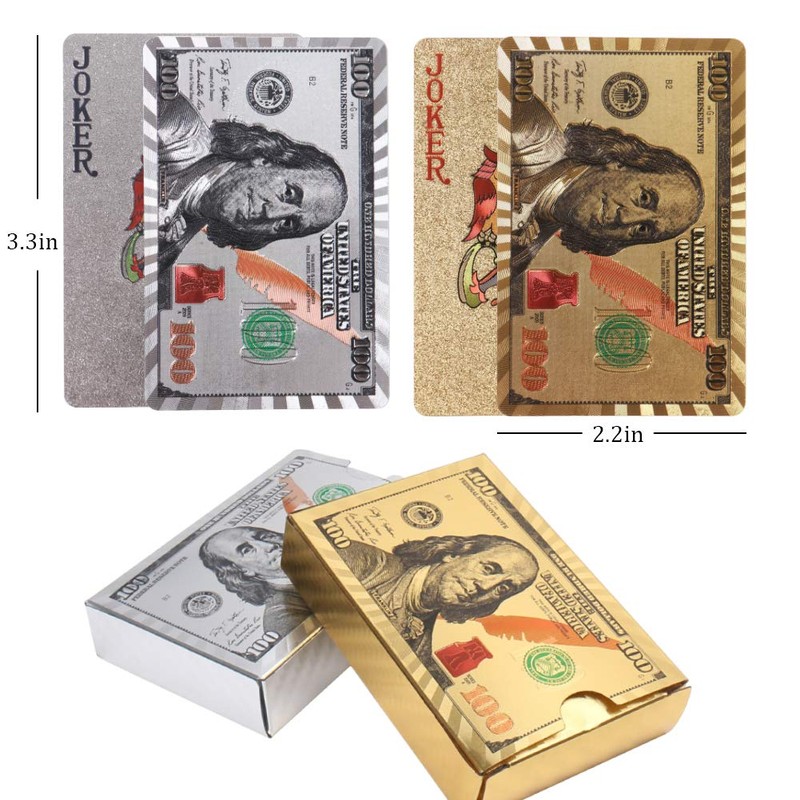 - 24K DELICATE POKER PLAYING CARDS: Unlike normal poker, these cards are designed with gold foil and silver foil dollar pattern, shiny and delicate, looks more luxury.
