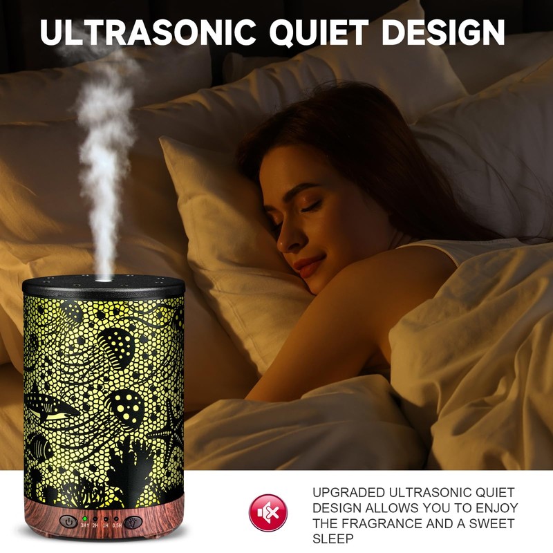 - Whisper Quiet Ultrasonic Technology: Utilizing advanced ultrasonic technology, our aroma diffuser operates quietly without disturbing noise, making it perfect for use while sleeping or working. It fills the room with a lovely fragrance that uplifts spirits and relieves stress from a tiring day.