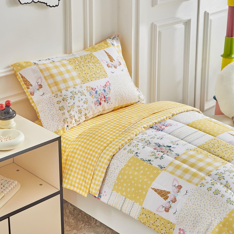 - Yellow Patchwork Design: Beautiful butterflies flowers combine with lovely unicorn, cute and full of children interest. Bright and vibrant patterns bring happiness to children, and attract them to get to bed early.