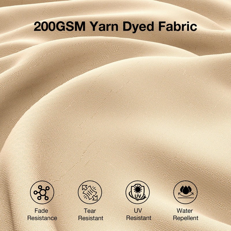 - Premium Fabric: The patio umbrella is made of 100% high-quality polyester fabric with excellent colorfastness. The surface is coated with a polyurethane layer, offering outstanding sun protection and waterproofing. It is designed to provide you with a cool, comfortable, and healthy outdoor environment