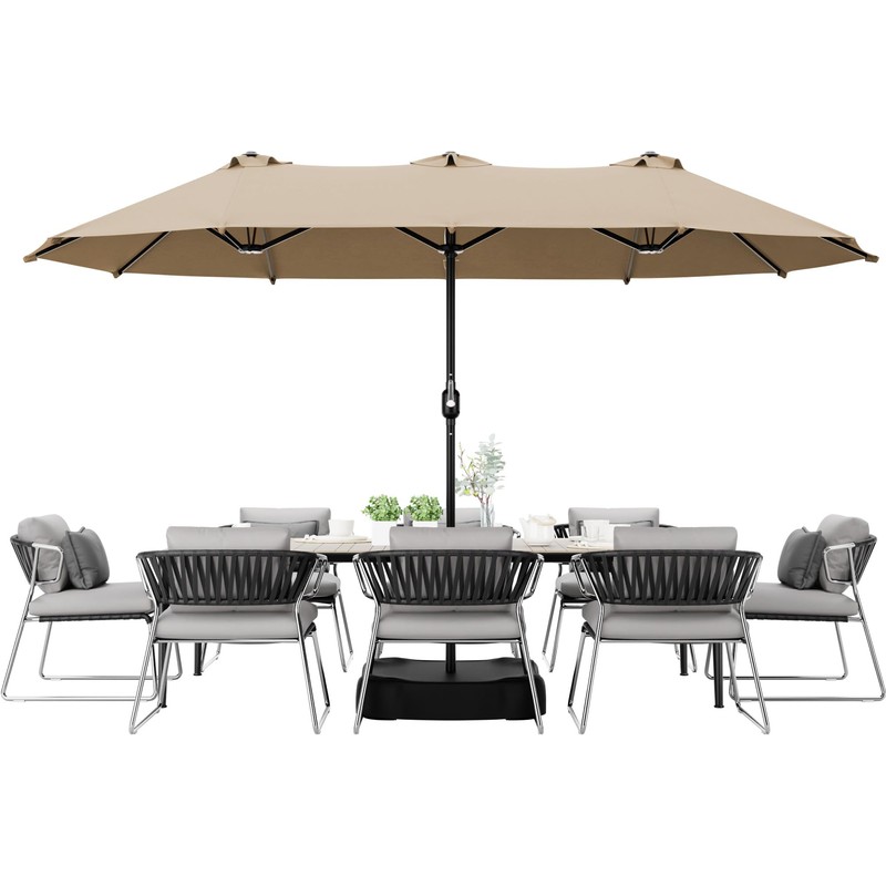 Joyside 15FT Large Patio Umbrella with Base Included, Outdoor Double Sided Umbrella, Rectangle Umbrella with Crank Handle, 12 Sturdy Ribs for Deck, Porch and Pool (Beige, Base)