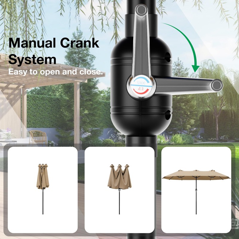 - Hand Crank System: The easy-to-use crank lift system smoothly opens and closes, allowing you to enjoy hassle-free outdoor shading. The top safety lock design effectively enhances security