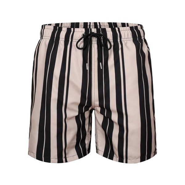 JOYSON Mens Swim Trunks Quick Dry 5 Inch Swim Shorts Bathing Suits with Mesh Lining Pockets Black Khaki Striped M