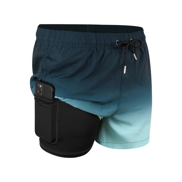 JOYSON Mens Swim Trunks with Compression Liner Quick Dry 5" Swimming Shorts with Pockets Nile Blue Gradient M