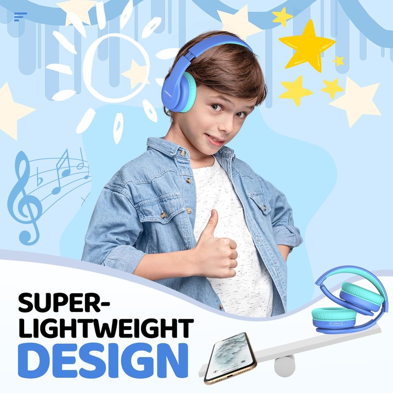 JoySpark JoySpark Kids Bluetooth Headphones, Lightweight Kids Wireless Headphones for Kids, 85/94dB Volume Limited, 60 Hours Playtime, Bluetooth 5.3, Over-Ear Toddler Headphones with Built-in Mic-Blue