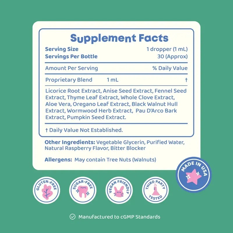 Ingredients | anise seed,pumpkin seed,workwood herb,black walnut hull |