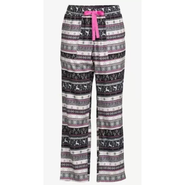joyspun NWT Joyspun Women's Pink Grey Woven Reindeer Snowflake Pajama Pants Sz L (12-14)