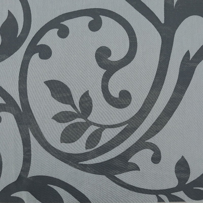 This panel curtain with floral burnout on semi-transparent fabric features a timeless, transparent tendril design.
