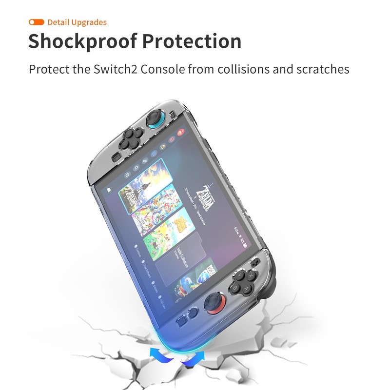 Introducing a clear protective case for Nintendo Switch 2 (2025) The ultimate accessory to keep your game console safe and stylish. This dockable crystal case cover is specifically designed for Nintendo Switch 2 with a clear, slim design that ensures maximum protection while maintaining the original look of the phone. In addition to a split design for easy access to all buttons and ports, the Joy-Con removable construction combines both functionality and beauty. Enhance your gaming experience with premium Nintendo Switch 2 accessories
