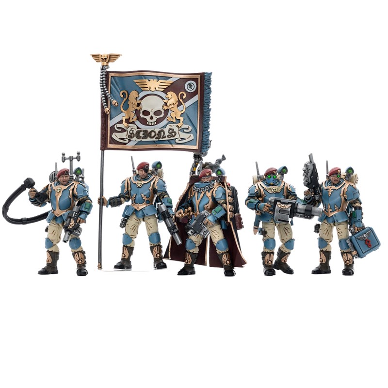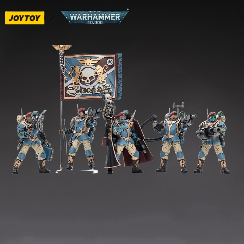 JoyToy 1/18 Warhammer 40,000 Action Figure Astra Militarum Tempestus Scions Command Squad 55th Kappic Eagles (Set of 5 Figures) Collection Model(4.2inch)