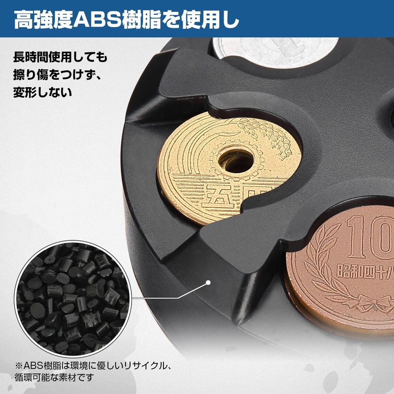 (Highly compatible large capacity case) This storage item allows you to quickly organize loose changes. With a large capacity of 29 sheets, it can store 2,830 yen coins. The 500, 10, and 5 yen pedestals are slightly larger than a 100 yen/50 yen base, so they are more compatible with other products. (Prevents coins from popping out) Equipped with a highly elastic spring to securely catch coins. Whether you carry it in your pocket or bag or accidentally drop the coin holder, you don't have to worry about losing your coins falling apart. Convenient to Carry and Store: Diameter 3.4 x 0.9 inches (8.6 x 2.3 cm) makes it easy to use and convenient to carry around. Only 3.5 oz (100 g) while not storing coins. Even if you put it in your pocket, you won't have to worry about it. (High Strength ABS Plastic Material) ABS resin is a material that is environmentally friendly, recyclable and circulable with excellent heat resistance, oil resistance, and weather resistance. Our coin cases are made of this material so they won't scratch or deform even after long time use. (Useful for Various Occasions) Use this case to arrange coins one by one in advance so you can easily remove them without looking for the coin you need. Recommended for coin collectors, people who love storage, housewives, and drivers. (Various ways to play) Not only can it be used as a coin storage item, but it can also be used to kill time and relieve stress. The unique round appearance allows you to roll and play with the ball in the middle to kill time.