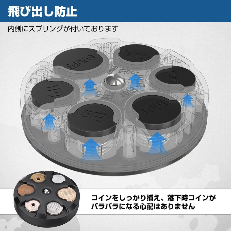 • (Prevents coins from popping out) Equipped with a highly elastic spring to securely catch coins. Whether you carry it in your pocket or bag or accidentally drop the coin holder, you don't have to worry about losing your coins falling apart