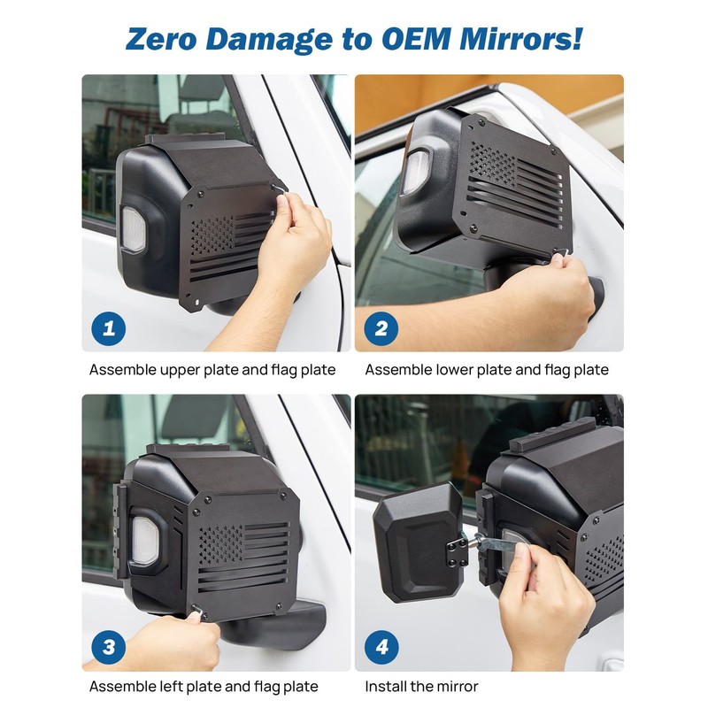 - Integrated Tactical Rails (Top & Side) for Versatile Mounting: Equipped with top and side rails. Securely mount the Action Camera, duck, and auxiliary lights. Remove mirror extenders for towing to use for lights or accessories