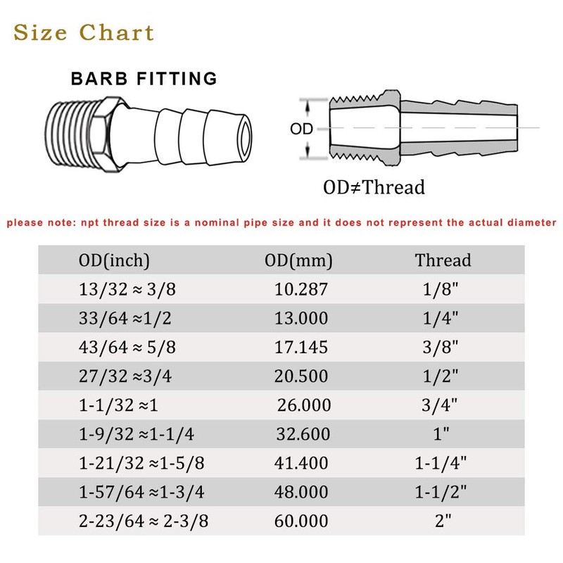 | Size: | 3/8" Barb x 1/8" NPT Male |