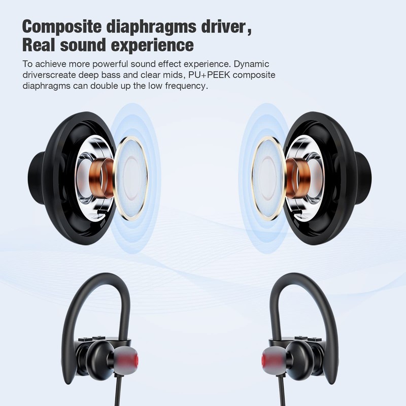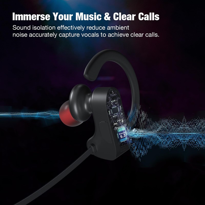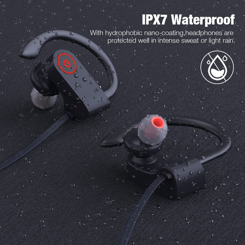 - 【IPX7 Waterproof Headphones】 Adopting highly sealed shell + nano-coating waterproof technology, this headphones waterproof performance reaches IPX7 waterproof standard, and it is not afraid of sweat attack even if it is used in severe sports. Great for running, hiking, cycling, fitness, yoga, travel, gym etc.