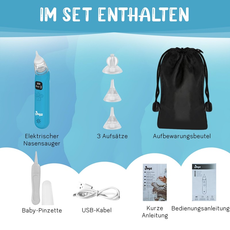 JOYZ Electric Nasal Aspirator Baby Nasal Aspirator with 3 Attachments and 3 Suction Levels to Relieve Nasal Congestion Nose Nose Care for Babies and Children 0 to 12 Years