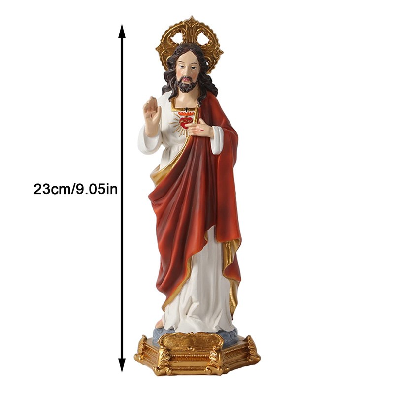 - EXQUISITE RELIGIOUS FIGURE The statue of the Sacred Heart of Jesus features exquisite design with detailed craftsmanship. This elegant religious figurine captures the essence of faith and devotion, making it a gorgeous centerpiece of any Christian interior decor or religious art collection