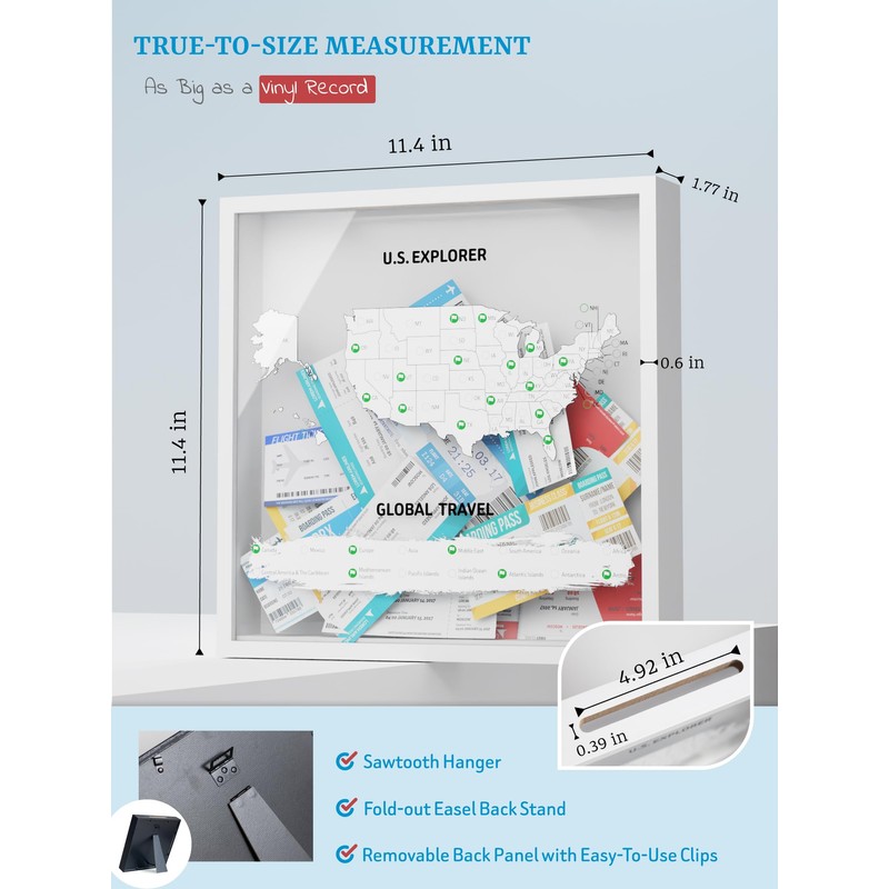 - SHOWCASE YOUR TRAVELS IN STYLE: Use our travel shadow box, Turn your travel tickets into a visual story! Every keepsake—ticket, airline ticket, movie tickets, postcard, concert ticket, travel photo, etc.— finds its place in this 11.4” x 11.4” life in a box travel frame, preserving your cherished memories in a stylish and meaningful way