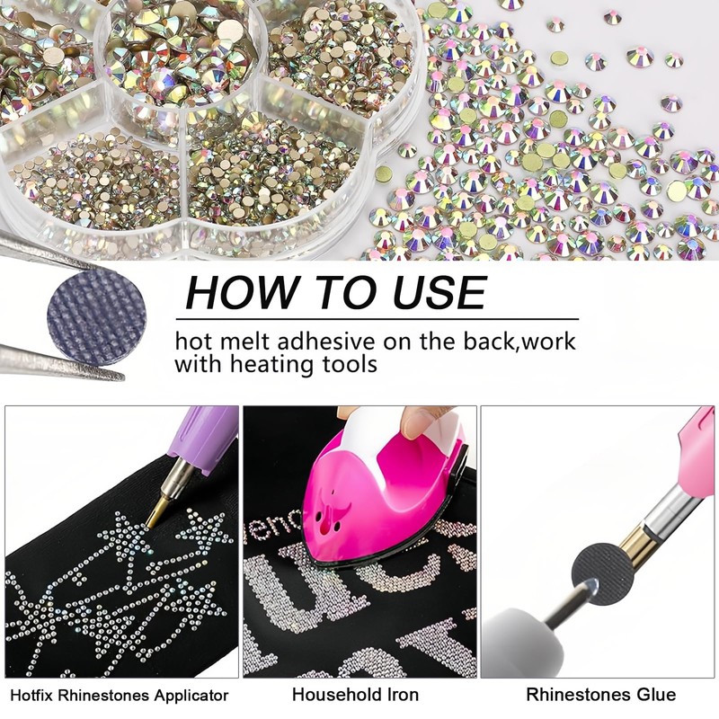 - Easy To Use: Please clean the surface of the object to be decorated before using the silver rhinestones, then apply glue and let it sit until the glue dries. The flat bottom is not easy to fall off, ensuring a long-lasting decorative effect. You can also use a melt glue gun, household iron or hot glue applicator to stick it on. With nail art accessories, you can place rhinestones precisely and create impressive designs.