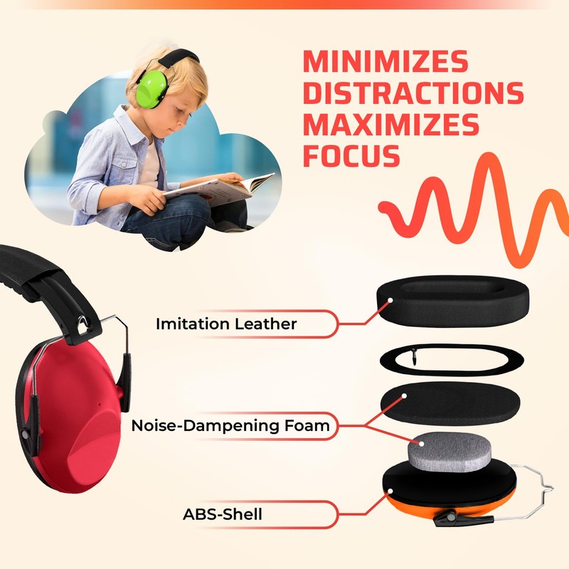 - 【Premium Build & Soft Padding】Crafted with soft PU leather and high-density soundproof sponge, these kid's ear protection headphones ensure long-lasting comfort during extended wear. A great choice for toddlers and children with autism or sensory sensitivities, providing gentle, effective noise cancellation in any environment.