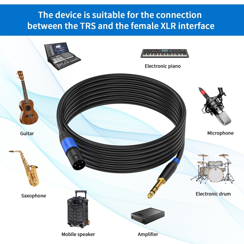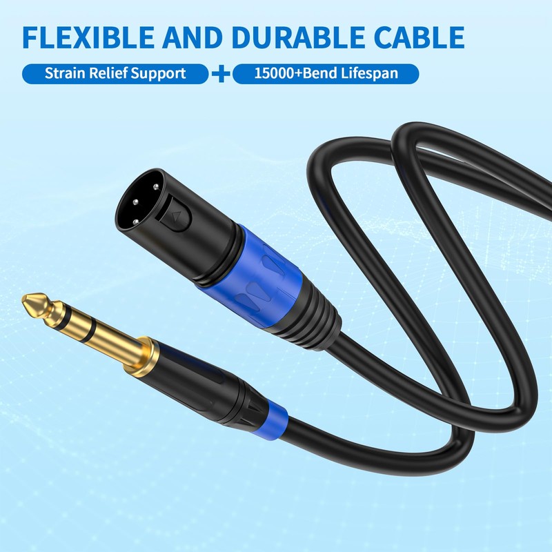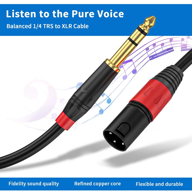 • male XLR to 1/4 Inch (6.35mm) TRS Mono Jack Microphone Cable, has amazingly excellent clarity and the highest noise and radio frequency interference cancellation. The 3-core XLR cable design is known for greatly improving noise suppression, reducing noise by 95%