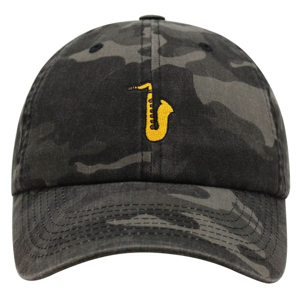JPAK Saxophone Premium Dad Hat Embroidered Cotton Baseball Cap Instrument Black Camo