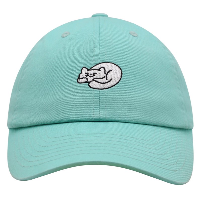 JPAK Sleeping Cat Premium Dad Hat Embroidered Cotton Baseball Cap Cute Mint