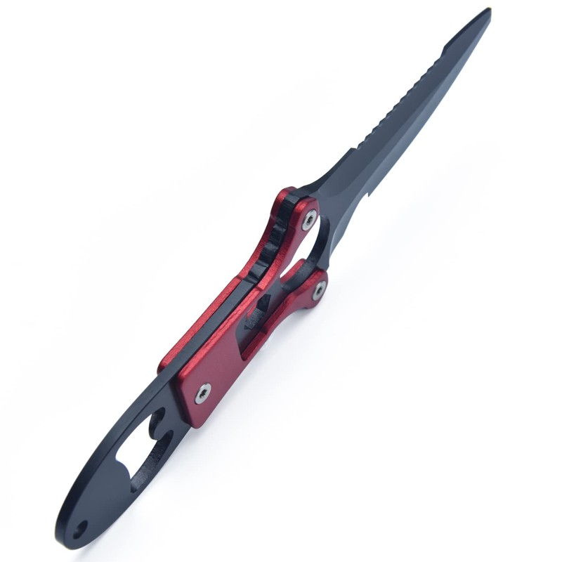 JPCRMOV Diving Knife with Leg Strap Nylon Sheath, Diver's Utility Knife Fixed Blade serrated knife (Red Handle)