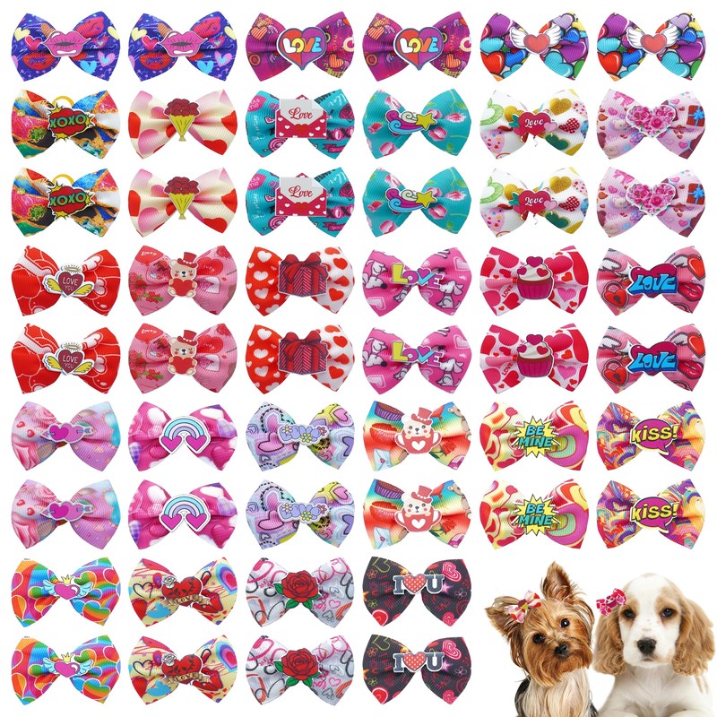 - Valentines Dog Hair Bows Package: You will get 50pcs/25pairs in pack, heart rose kiss lips pattern as picture