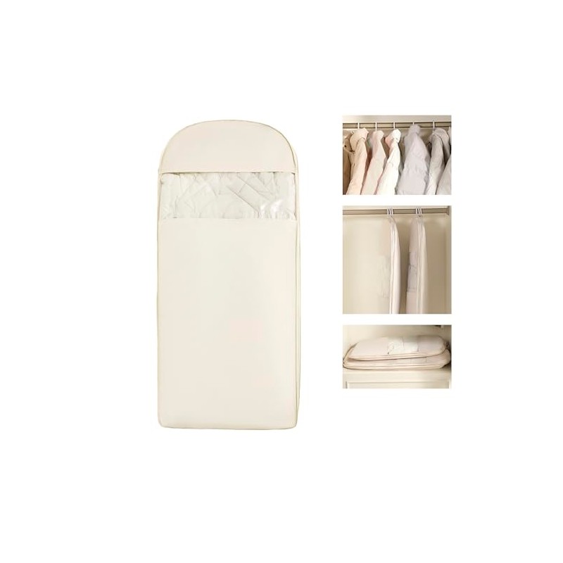JQC ZASZHX Space Saving Hangable Garment Bag with Self Compression Zipper - Organizer for Closet/Luggage(Beige,L)