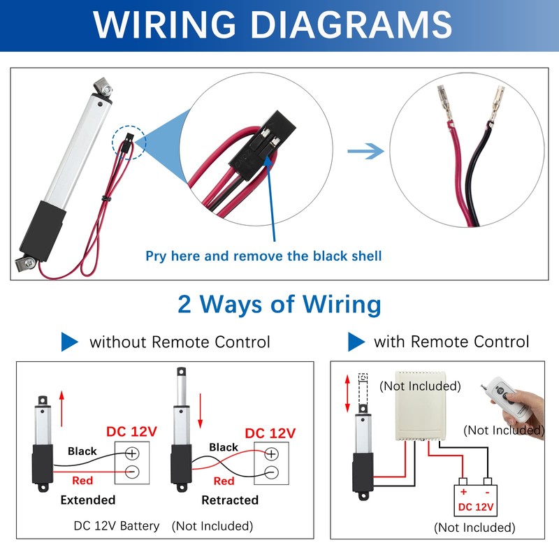 • ⚙️【High quality】The linear actuator is made of high quality aluminum;with high performance motor and built-in limit switch,it can be stopped at any position and automatically stop at the top,with self-locking function.