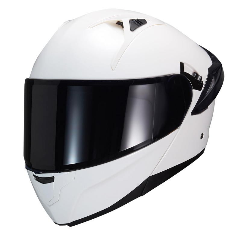 JQF Gear Modular Motorcycle Helmet Dual Visor Flip Up Full Face Helmets SJ-809 DOT Approved for Adults Men Women (SJ-809 Gloss White, M)