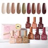 JR 9 Colors 0.5oz Gel Nail Polish Set Bow Bottle Design Including Red Pink Nude Gel Polish Kit UV LED Soak Off Polish Home DIY Gift C Brown Series