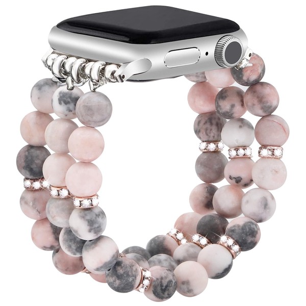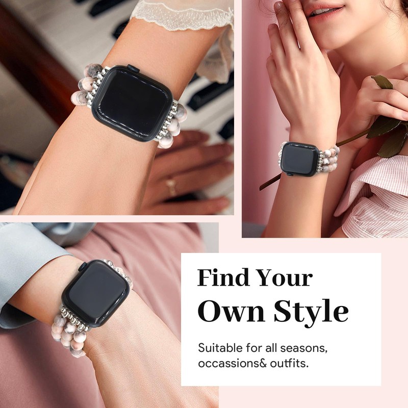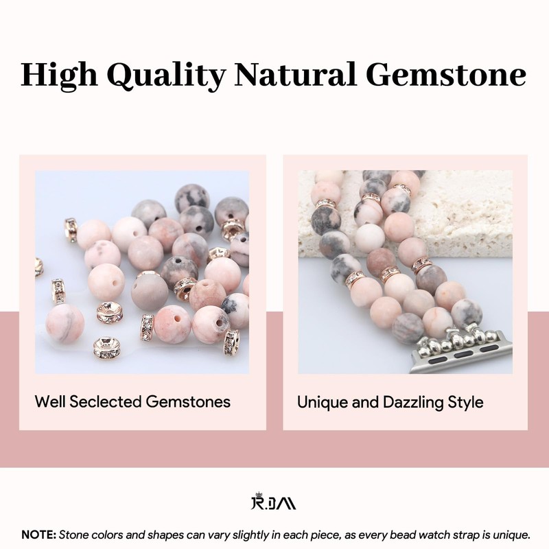 JR.DM Natural Stone Bracelet Beaded-Bands Compatible with Watch Series 10 9 8 7 6 5 4 3 2 1, Feminine Cute Handmade Elastic Stretch Beaded Strap For iWatch Bands 46mm 42mm(S3/2/1) 44mm 45mm 49mm Women