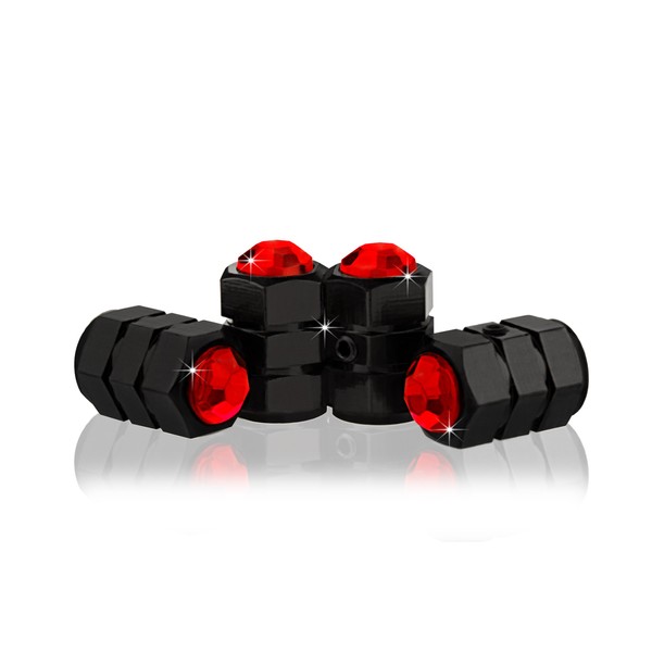 JR2 Bling Anti-Theft Locking System RED(RD-BC) Crystal Metal Black Tire Rim Valve Stem Cap