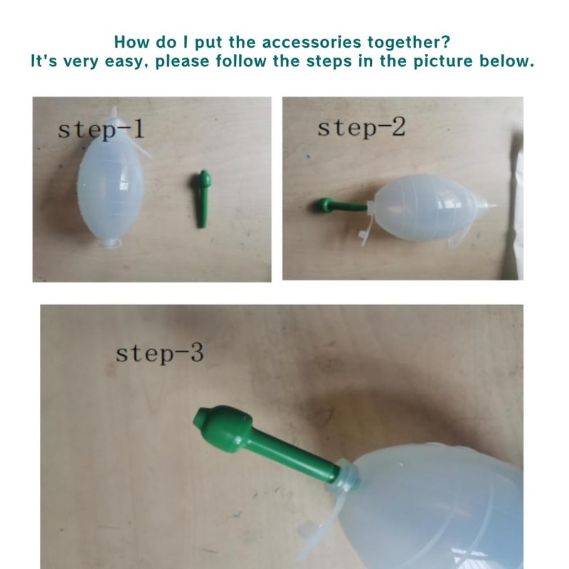 How to use the blowing device 1.After the installation of a mouth with a mouthfulof water (no water is fine) 2.First put the nose plug into a nostril, the othernostril press not to press can be, as long as toensure that do not breathe on the line. 3.swallowing a moment to pinch the ball, (pinchthe ball to be fast and dry, before the operation canbe pinched a few times to try to feel the force of theairflow) ear canal ringing or sense of ventilationmeans that the operation is successful. 4.One nostril operation is unsuccessful, changeanother nostril to try, are unsuccessful, then repeatthe operation after five minutes 5. Keep using it three times a day.