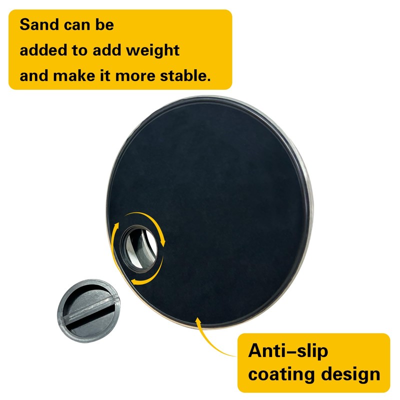 - Bottom weight increase——The weighted base ensures the stability of your flagpole and flag, and the bottom is equipped with a rotating cover, which can be injected with sand or stones to increase the weight of the base, the cover has good sealing, can remain stable even in strong wind conditions outdoors