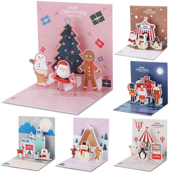 - Easy to use: - The 3D Christmas cards are flat after folding, and when opened, pop up the different Christmas elements: Santa, gingerbread man, snowman, reindeer and more.