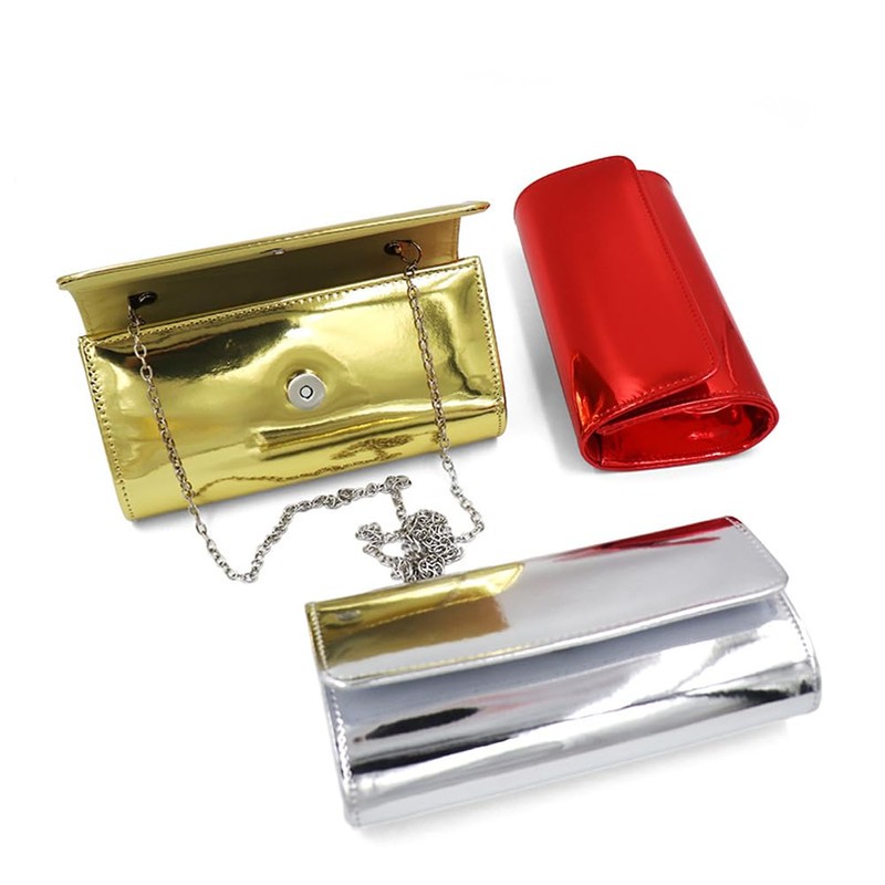 JRNDNIUO Gold Metallic Purse Flap Dazzling Small Clutch Bag Evening Bag With Detachable Chain