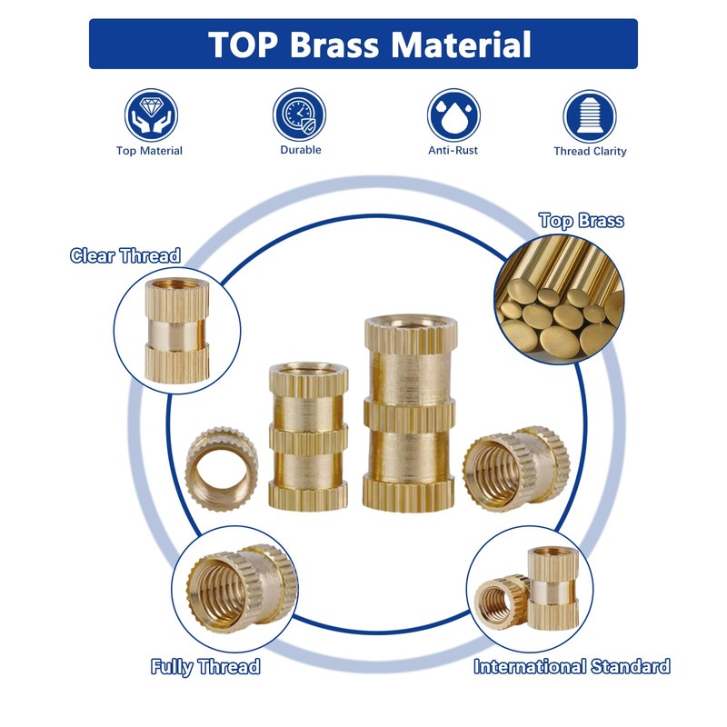 - Premium Material: Crafted from top-grade brass material, these threaded inserts exhibit exceptional durability and are highly resistant to breaking or deformation. With a high-temperature resistance above 300°C / 572°F, they can effortlessly withstand the demanding heat generated during your plastic heat-setting processes. Additionally, the superior thermal conductivity enhances the overall effectiveness and performance of your plastic heat set applications.