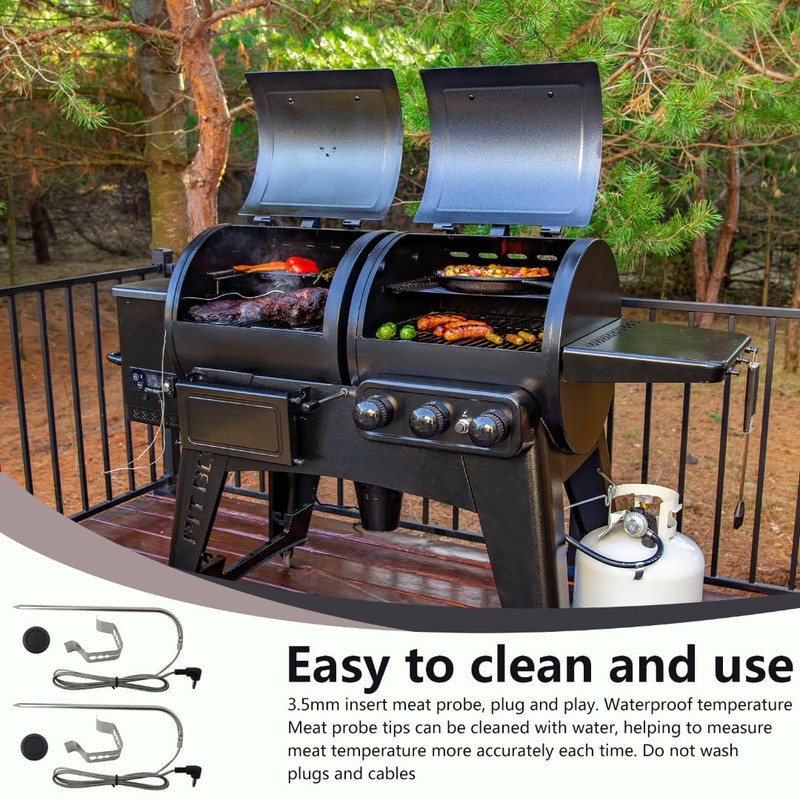 - Easy to Clean and Use: 3.5 mm plug-in meat probe, plug and play. The waterproof temperature meat probe tip is washable with water, helping to measure meat temperature more accurately each time. Plug and cable are not water washable