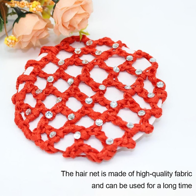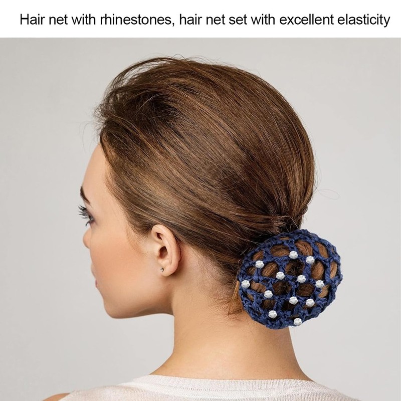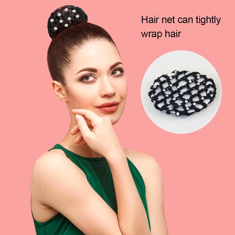 - Fashion design: hair net with rhinestones, hair net set has excellent elasticity, you can quickly put your hair in the hair net, and you can organise your hair anytime and anywhere, which is very comfortable.