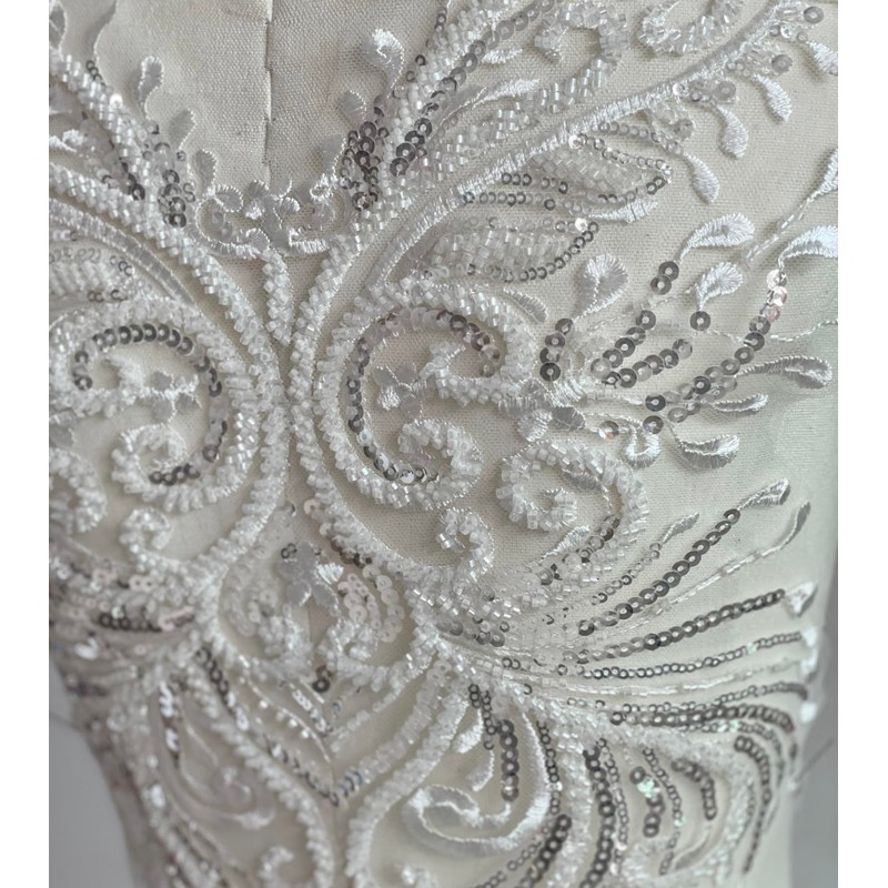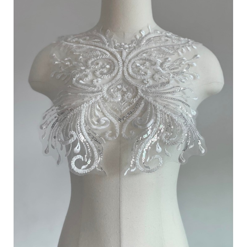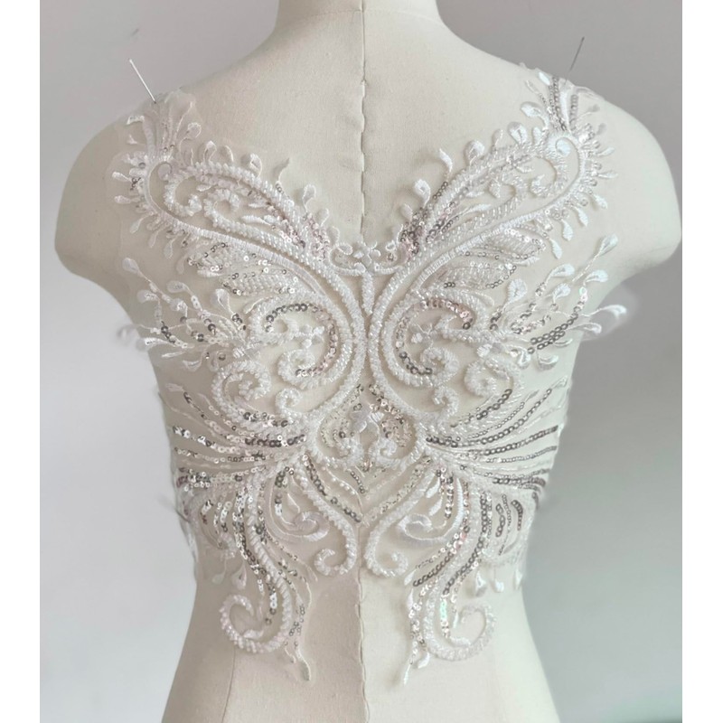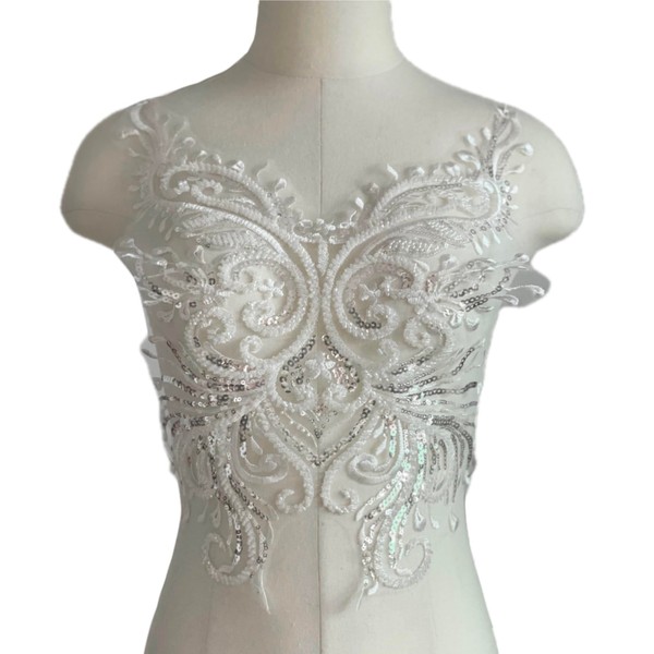 JRYYR White Sequin Appliques, Flower Lace Appliques, Bodice Applique, Beaded Applique for Dresses, Dancewear, Evening Gowns, Apparel and More(White)