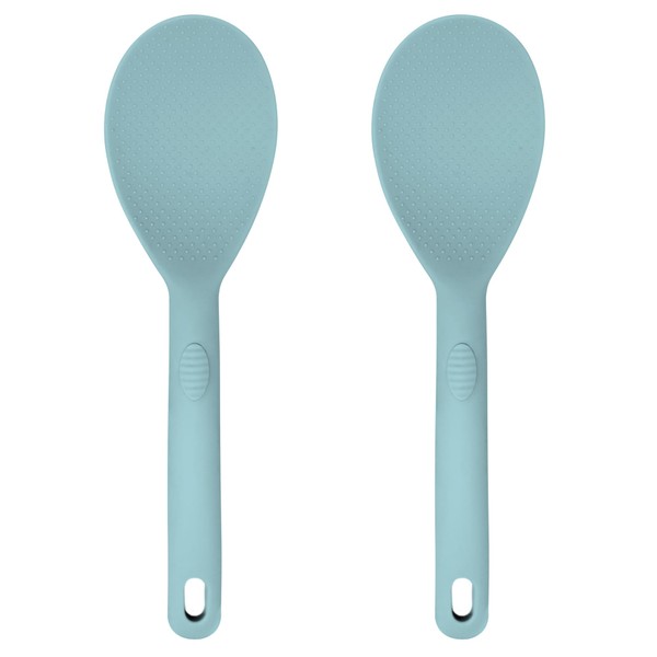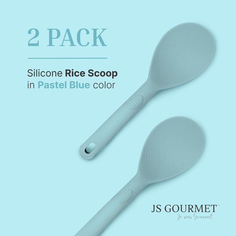 JS Gourmet 2 Pcs Silicone Rice Paddle, Heat Resistant Non-Stick Rice Spoon Spatula with Comfortable Handle for Cooking and Serving Mashed Potatoes, Scrambled Eggs, Sticky Bread Pudding - Pastel Blue