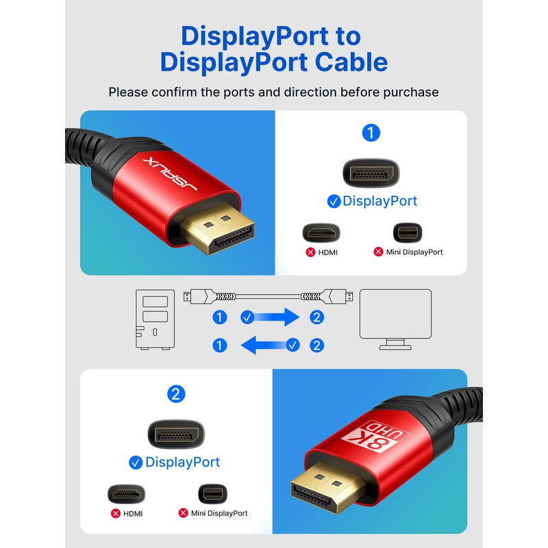 • 【What You Get】You can get a red 3ft displayport cable 1.4. Please check the port before you pay. This is display port to display port cable, it is not compatible for HDMI port.