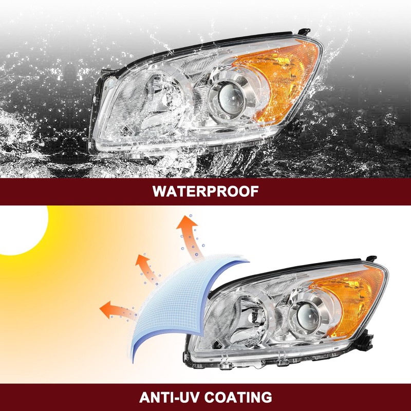 • 【VEHICLE COMPATIBILITY】Headlights Assembly Compatible With 2009-2012 Toyota RAV4. Bulb is included. High beam bulb type: 9005; low beam bulb type: H11. OEM Part Number: TO2502190, TO2503190, 8117042470, 8113042470